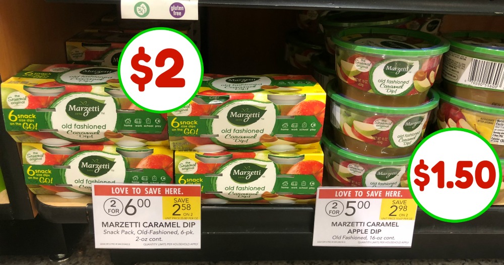 Marzetti Old Fashioned Caramel Dip ONLY $2.50 at Kroger with NEW Coupon ... Right now we have a $3.50 sale price that matches with a couple $1.00 coupons. That means out the door you'll pay $2.50! ... Marzetti Old Fashioned Caramel Dip (16 oz) - $3.50 (thru 12/31)[/pl-title] [pl-desc]Use Use $1.00/1 Marzetti Caramel Dip; Includes 10 oz or more printable